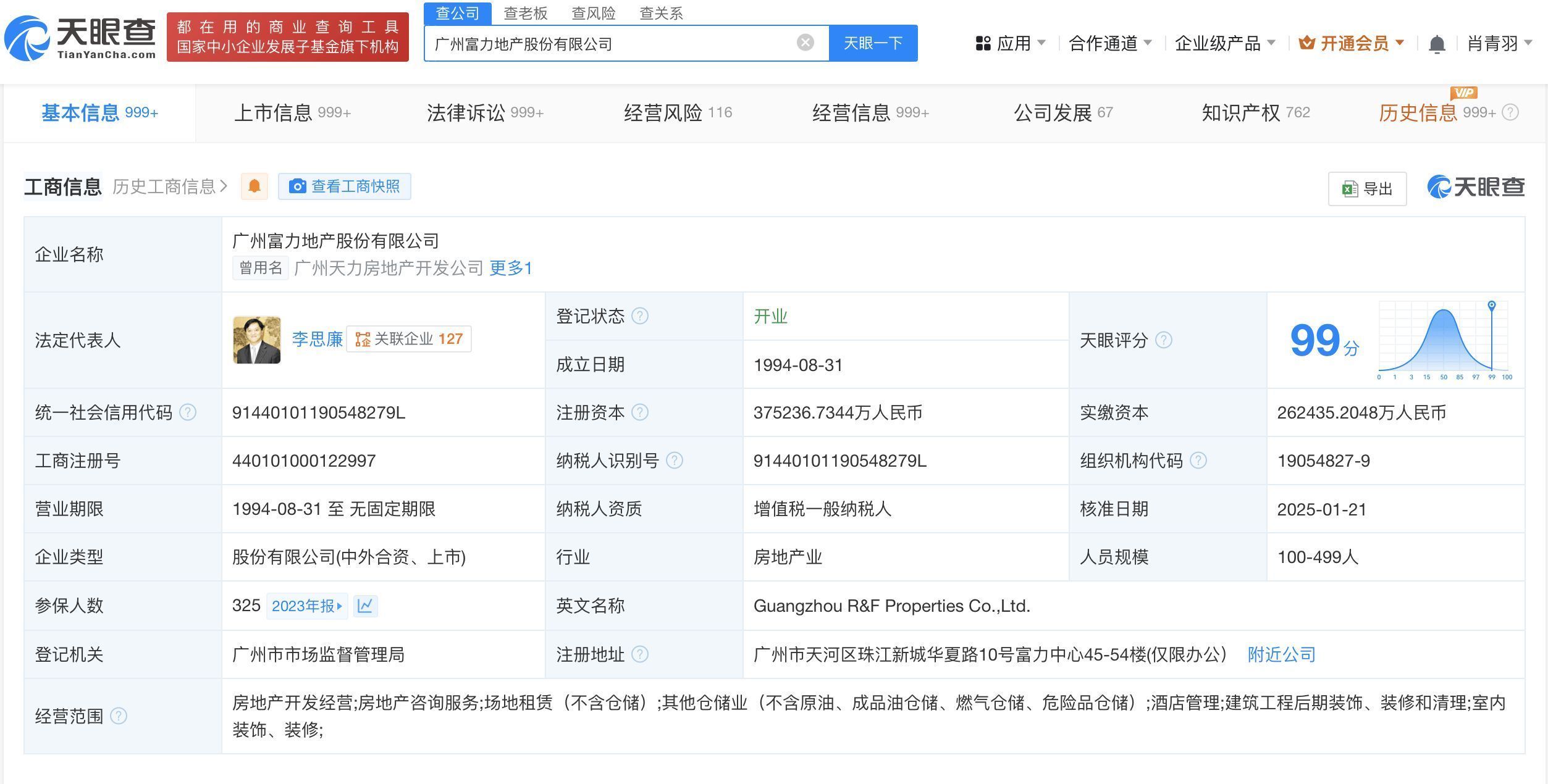 天眼风险信息显示,广州富力地产股份有限公司现存60余条被执行人信息,被执行总金额超183亿元。此外,该公司还存在多条限制消费令、失信被执行人(老赖)及终本案件信息。